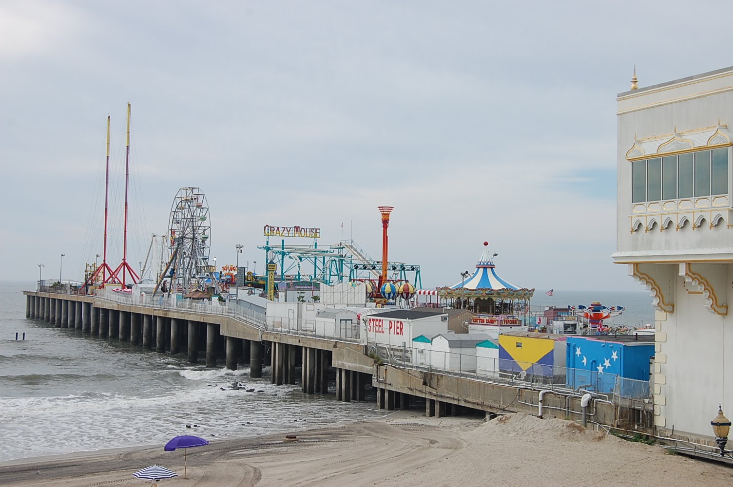 We walked around the boardwalk and watched the awesome watershow inside the Pier Shops. Then we went to the pool for the afternoon. For dinner we went to the Hard Rock Cafe which was yum. After that we walked over on the Steel Pier and got a chariacture (sp?) done! Later we got a funnel cake, walked on the beach, went and lost $40 on the slot machines, bought some candy from the awesome candy store and called it a night!