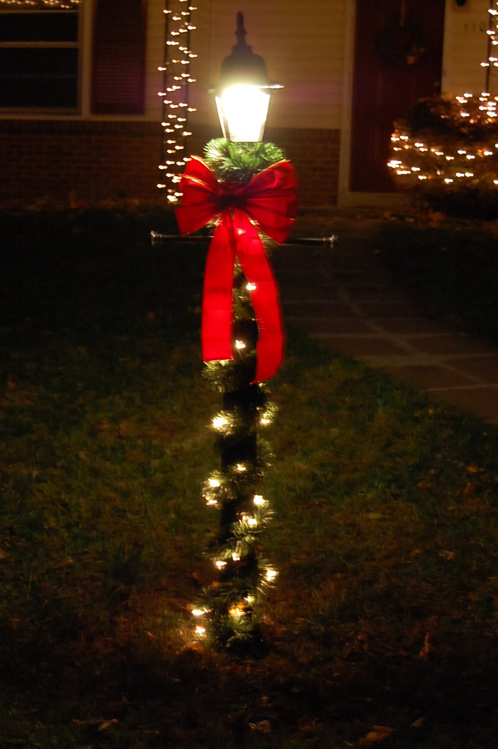 Christmas-Fall! :) I tried to rake up the leaves before we put the lights up yesterday but it was just so cold! Even though the lights are pretty, it's hard for me to think christmas with a bunch of yellow leaves in the way! But all of the fall decor is at least put away inside!