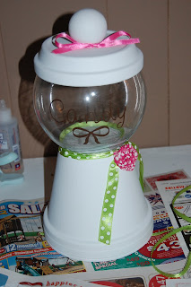 Then I cut the word candy & a ribbon on my cricut on some brown vinyl and put it on the vase...I need to order some white vinyl, though I probably would not have painted this white if I had white vinyl.
