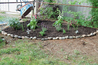 I put some more dirt (all the same kind this time) in my veggie garden so it didn't look quite so terrible (like my last post). My cucumbers/green peppers were wilting but they just needed some water! :)