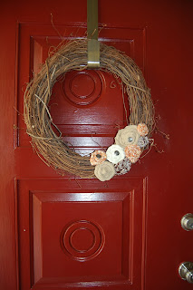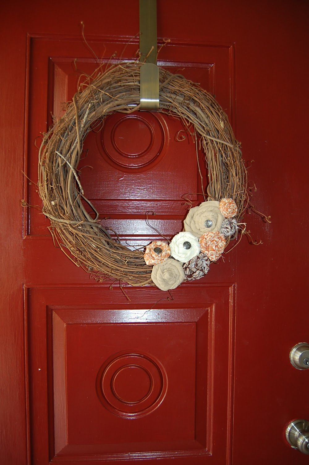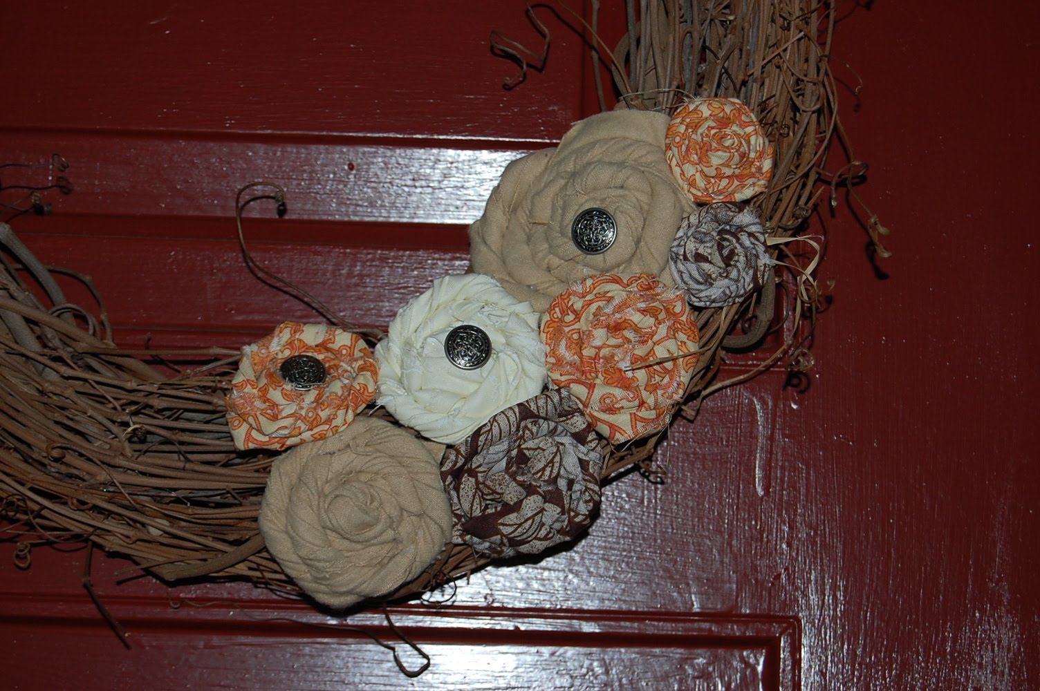 I didn't want the traditional fall wreath. I had seen these fabric flowers a million places but I saw two of these wreaths. I think Shanty2Chic did one but they sprayed their wreath white. And the other place, unfortunately I can't remember where is a little more similar to the one I just did. I must start saving where I found these things!