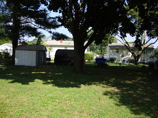 Backyard: Before the tree fell down. It's since been picked up!! Woo hoo. I just haven't taken a new picture of the yard, but it's about the same I guess...though it does look better in this picture :)