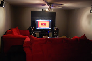 Basement: Before/After. Chance has been working hard on his theater type room. The rest of the basement is an absolute mess. We haven't even started on it yet. But this room is almost complete. I couldn't get a good picture of it, but it really looks awesome! :)