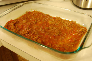 My dad taught me how to make lasagna. I tried to remember how to make it and had to call him the first couple times just to be sure I had it right, turns out it didn't really matter because I don't actually have this recipe written down anywhere (this will be the first time it's written somewhere), in fact I often forget things and it still turns out...SO....GOOD. After looking back at these pictures from March I realized last time I made this, I'm pretty sure I only used one can of sauce! :)