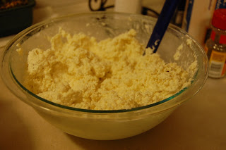 Then (wash your hands BUT it's really much easier to do this with your hands) mix the three cheeses (parm, mozz, and ricotta) with the egg and the seasoning.
