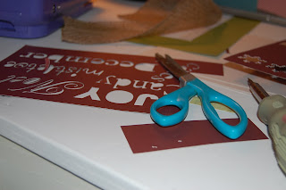 Since the words were really small and of course weren't vinyl, I was sitting there the entire time wondering how I was going to get it to stick to the green scrapbook paper....Once it was all cut out I laid it out how I wanted it and then I ended up taking a paint brush and mod podged all of the letters on. Tedious, a little bit, but I'm not sure how else I would have done it with everything that I had...it worked fine because my scrapbook paper I was using was a thicker cardstock.