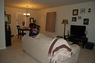 The first week we moved in I knew exactly what colors I wanted to paint the bedroom, the bathroom, the kitchen, we even did the basement and I eventually did my craft room (though that is the only room I wish I had done a different color).....but the living room/dining room I just haven't been able to figure it out.....mostly because there's no turning back after I've done this big room, I realize it's still small but that's still going to be a lot of painting....and because of the hallway that comes out....do I paint the hallway? I really don't want to....but it will probably look weird? Hmmm that I have not decided yet.
