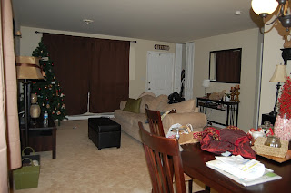 This room is frustrating. It's big but it's small, very small...it's hard to fit two rooms in here especially with the back door and the front door all in the way. Then in the living room side of it, I only have two walls, so trying to set it up is a nightmare.....at first I had it like this