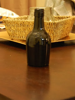 Like I've said, I'm looking for little decorative things to start filling up the house with...and I really wanted a twine wrapped vase but I was in the mood to do it and not in the mood to go to the store to get the materials. I had just a little bit of twine left so I went to look for a bottle I could use. I found this Baileys bottle still in the refrigerator when I tried to make Irish cream ice cream once....didn't turn out so great if you were wondering...need to figure out how to make it without alcohol! :)