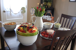 P.s. Since my husband doesn't like sweets too much, we did brownies instead of a cake so I needed a home for the candles I bought....candles + skewers + bowl of fruit = awesome