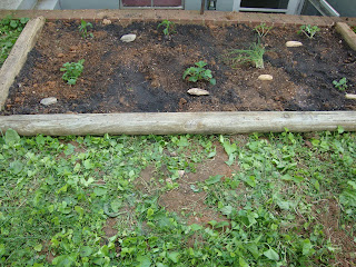 Yipee! I've been wanting to do this for awhile so we went out to get a few things so we could....I wasn't sure if I wanted to put these in the ground or if I wanted to do a raised box but in the end we decided the ground was best. I bought two bags of dirt, obviously it got mixed up with the ground dirt and I should have bought more. Oh well, dirt is dirt even if it's not pretty dirt.