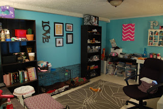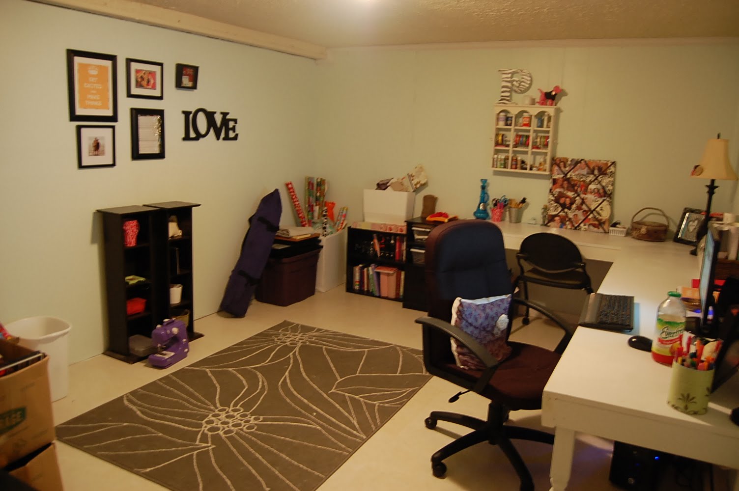 Second up is my craft room. I have to get this room done. I don't even know what I'm doing anymore. I can't ever figure this room out. I've started by mostly painting the ceiling white (it was an off white/tan before). And I was in process of painting the trim before I ran out of paint.